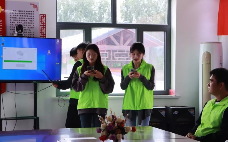 在韩家窝堡嘎查,推普活动稳步有序推进。推普队伍首先抵达韩家窝堡嘎查党群服务中心,讲解员以专业的视角、精准的阐释,从普通话的战略定位、文化传承使命以及关键地位等多个维度,为村民们全面深入地讲解有关普通话的知识,使村民们对普通话的认知逐步清晰且深刻。随后,组织村民观看视频,生动的画面直观地展现了普通话在沟通交流、信息获取以及促进发展等方面的重大作用。