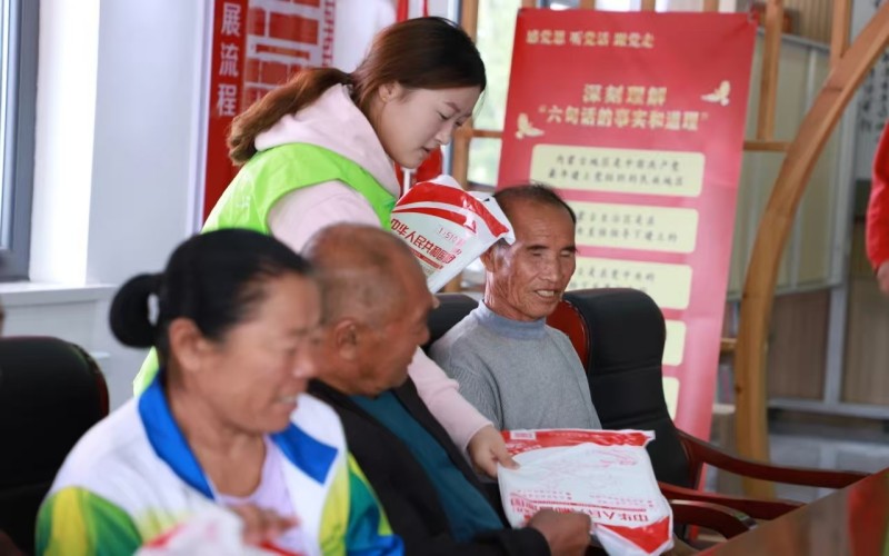 为推动群众普通话从“说得了”向“说得好”转变,推普队伍向村民们提供学习普通话的优质素材,捐赠了一批思想文化书籍,并与当地书记合影留念。