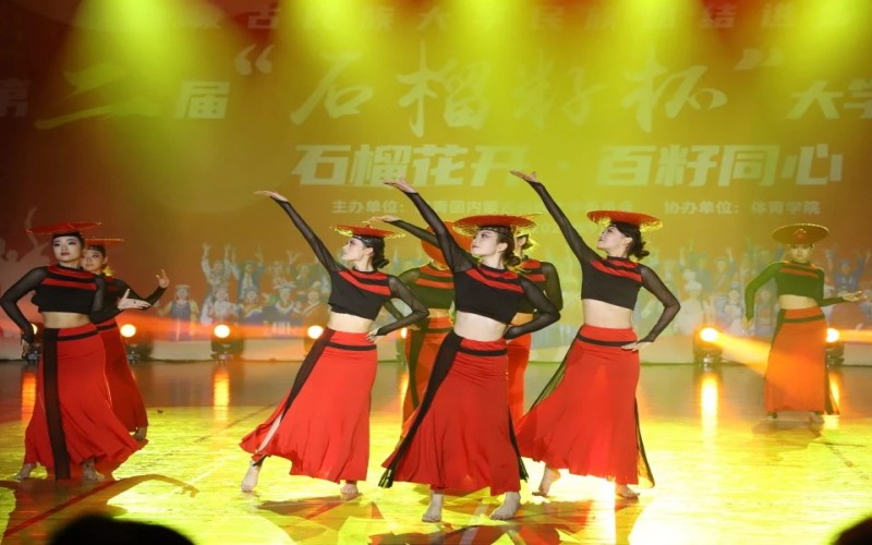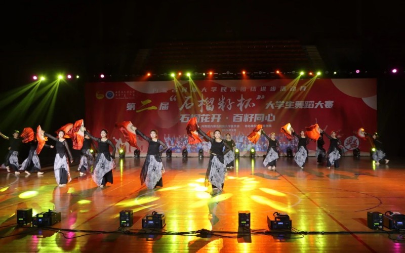 9月28日,内蒙古民族大学民族团结进步活动月第二届“石榴籽杯”大学生舞蹈大赛在奥体中心篮球馆圆满落幕。部分学院党委书记、副书记,校团委全体工作人员与三千余名师生共同观看比赛。