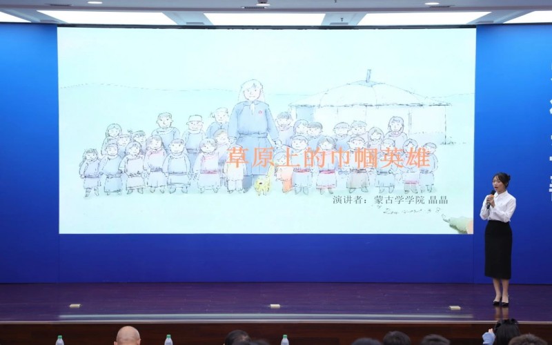 经过激烈角逐,物理与电子信息学院的李基冉荣获一等奖;生命科学与食品学院李明明、文学与新闻传播学院门宇婷荣获二等奖;农学院韩晓晶、体育学院王相国、蒙古学学院晶晶荣获三等奖。白雅楠评委对选手们的表现作精彩点评。