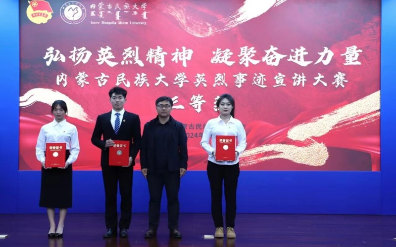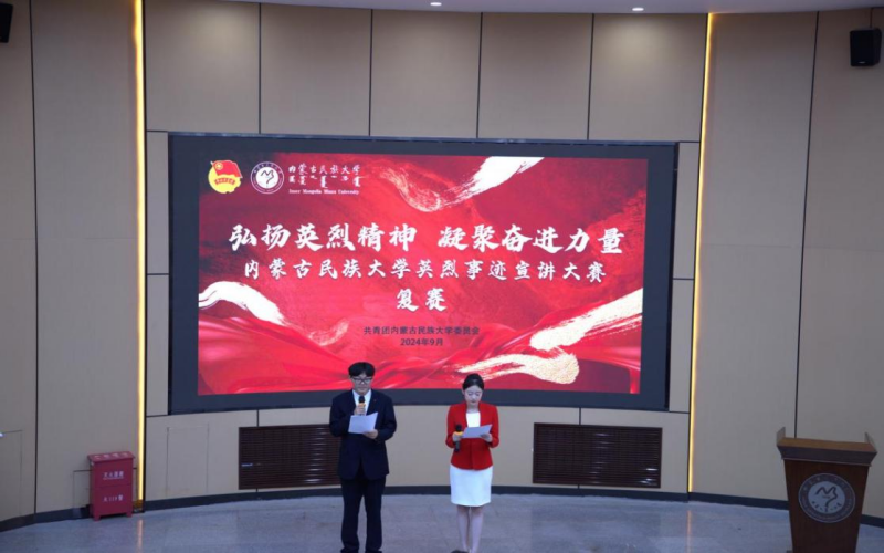 9月29日晚七点,内蒙古民族大学英烈事迹宣讲大赛决赛在图书馆大报告厅举行。校团委书记王振宇、通辽市退役军人事务局副局长汤孟雷、学生处副处长郝建辉、通辽市融媒体中心李娜、校团委素质拓展部副部长呼斯勒、通辽汉语综合广播主持人及原通辽市英烈宣讲团成员白雅楠、2023年获得自治区宣讲二等奖的英烈宣讲团成员谢鑫涛作为本次比赛的评委出席,近200名学生到场聆听宣讲。