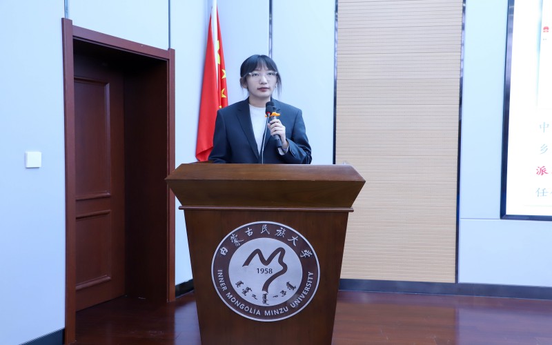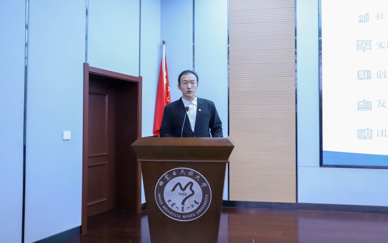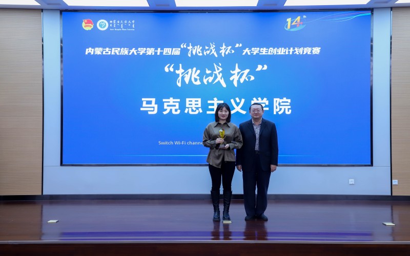 校团委副书记王强为获得内蒙古民族大学第十四届“挑战杯”大学生创业计划竞赛“优胜杯”的学院颁奖