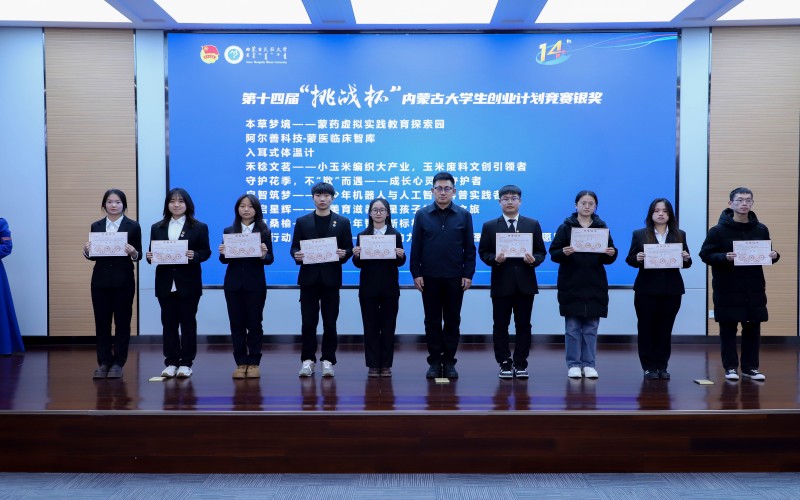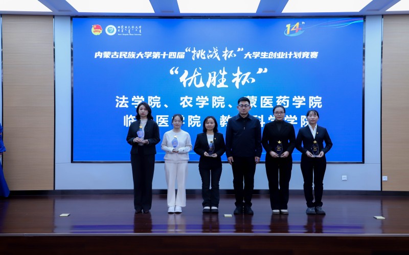 校团委副书记王强宣读了《内蒙古民族大学第十四届“挑战杯”大学生创业计划竞赛的表彰决定》,经专家评审、现场答辩等环节,最终评选出文学与新闻传播学院“小云书记”志愿者服务项目等15个项目为一等奖;经济学院“禾稔文茗——小玉米编织大产业,玉米废料文创引领者”等26个项目为二等奖;农学院“白色荒漠里的金疙瘩——盐碱大豆引领绿色农业新潮流”等21个项目为三等奖;外国语学院“语露计划”等40个项目为优秀奖。马克思主义学院获“挑战杯”;法学院、农学院、蒙医药学院、临床医学院和教育科学学院获“优胜杯”。