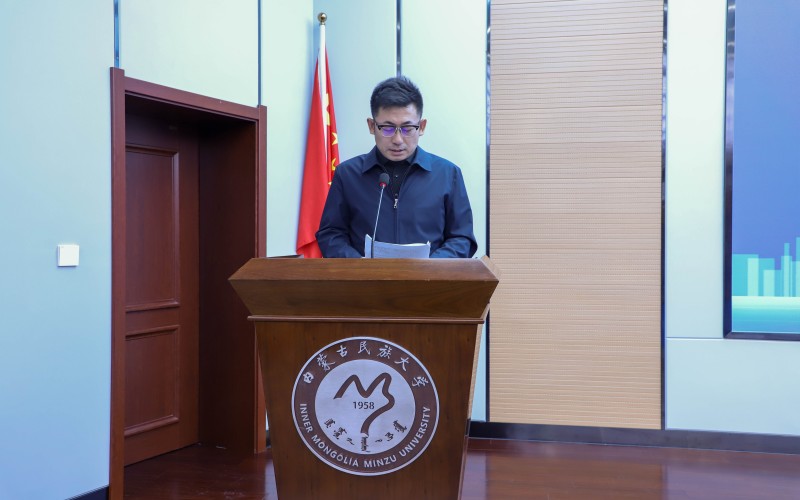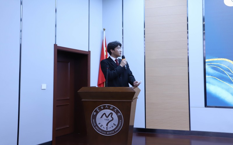 校团委书记王振宇为获得内蒙古民族大学第十四届“挑战杯”大学生创业计划竞赛“挑战杯”的学院颁奖